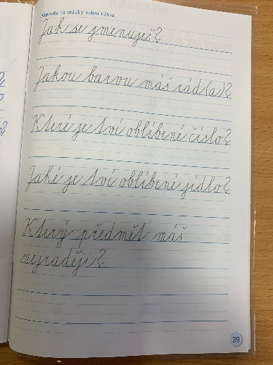 Str. 39, cvičení 2 - první řádek do sešitu.