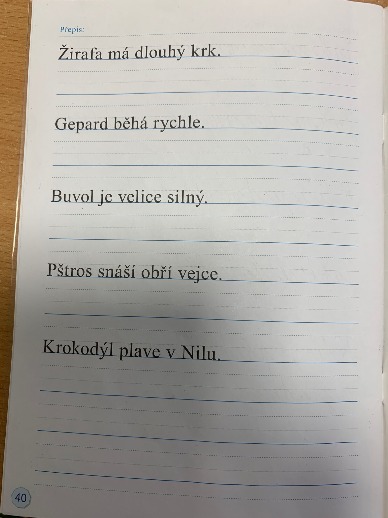 Samostatný přepis vět do sešitu-